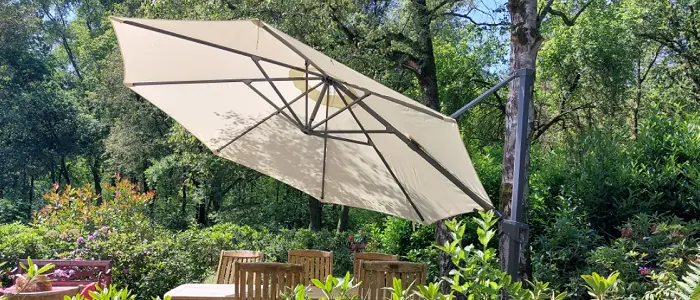 Les alternatives sont une voile d’ombrage, une pergola ou un store banne. Mais un parasol reste la solution la plus flexible et la plus facile à déplacer. Et grâce à nos toiles de remplacement, vous pouvez continuer à l’utiliser pendant des années.